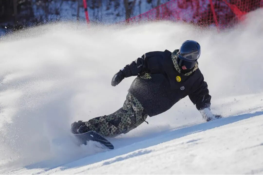 本次赛事以“全民参与-技能进阶-巅峰竞技”为核心,创新推出F5至F1五级分级体系,让不同水平的滑雪爱好者都能找到专属舞台。F5级无门槛开放报名,新手可轻松入场;F4至F1级凭上一级别成绩晋级,最高级别F1级将上演巅峰对决,形成清晰的成长路径。赛事难度随级别呈阶梯化、差异化。F5级具备低门槛的广泛参与性,适合所有单板选手,从平地单脚滑行100米起,通过爬坡登上平均坡比13%的初级道并顺利滑行至终点即可完赛。而最高级别的F1比赛,则需要选手在最大坡比40%鳌山A9子午道进行,选手需具备熟练精湛的单板滑雪技术,通过4米T型跳台、蘑菇道、波浪道、旗门绕滑等高能力要求的障碍道具方可完成比赛。多样包容的进阶型赛事内容设计,兼顾参与性与观赏性,进阶式的成长路径,极大提升了选手参与的热情与赛事黏性。