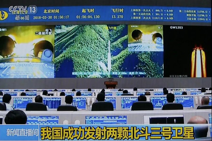 截屏图:2018年3月30日,我国在西昌卫星发掷中心用长征三号乙输送火箭(及远征一号上头级),以“一箭双星”神志见效放射第三十、三十一颗北斗导航卫星