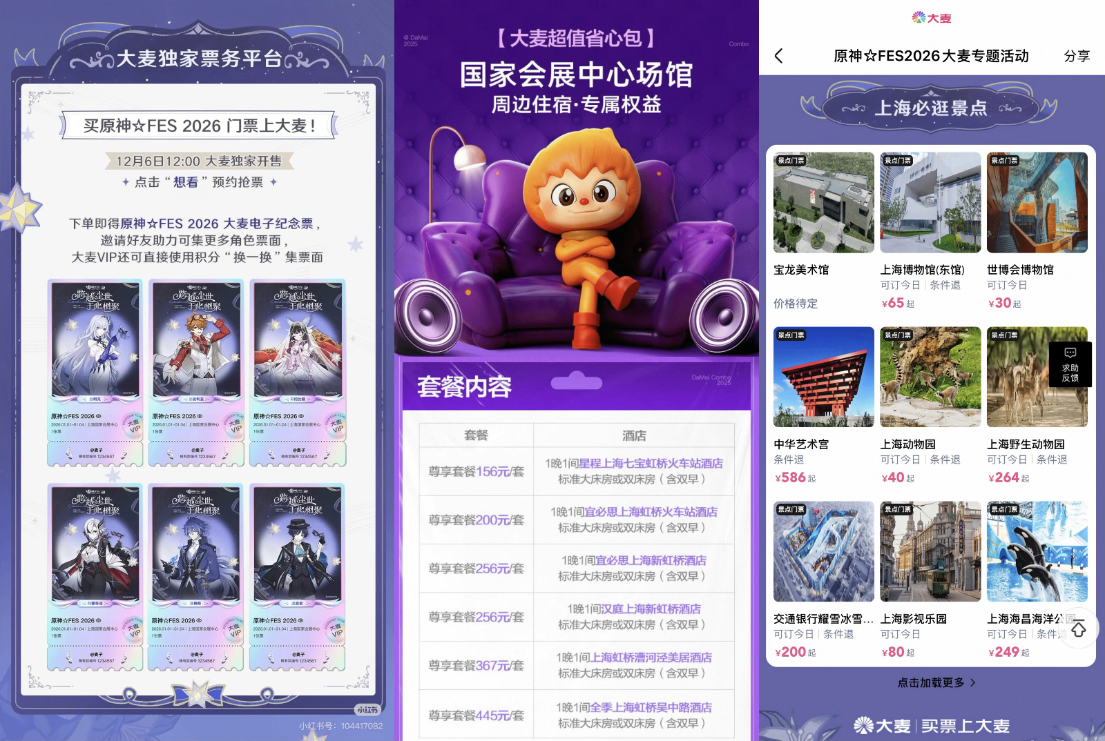 据介绍,2024年大麦与第二届“原神☆FES”就曾有过票务合作。今年,大麦娱乐与第三届“原神☆FES”则在此前基础上拓展合作维度,围绕玩家需求,打造了从线上到线下的全链路品牌互动体验,推动双方实现由票务向品牌共建伙伴的合作角色跃迁。
