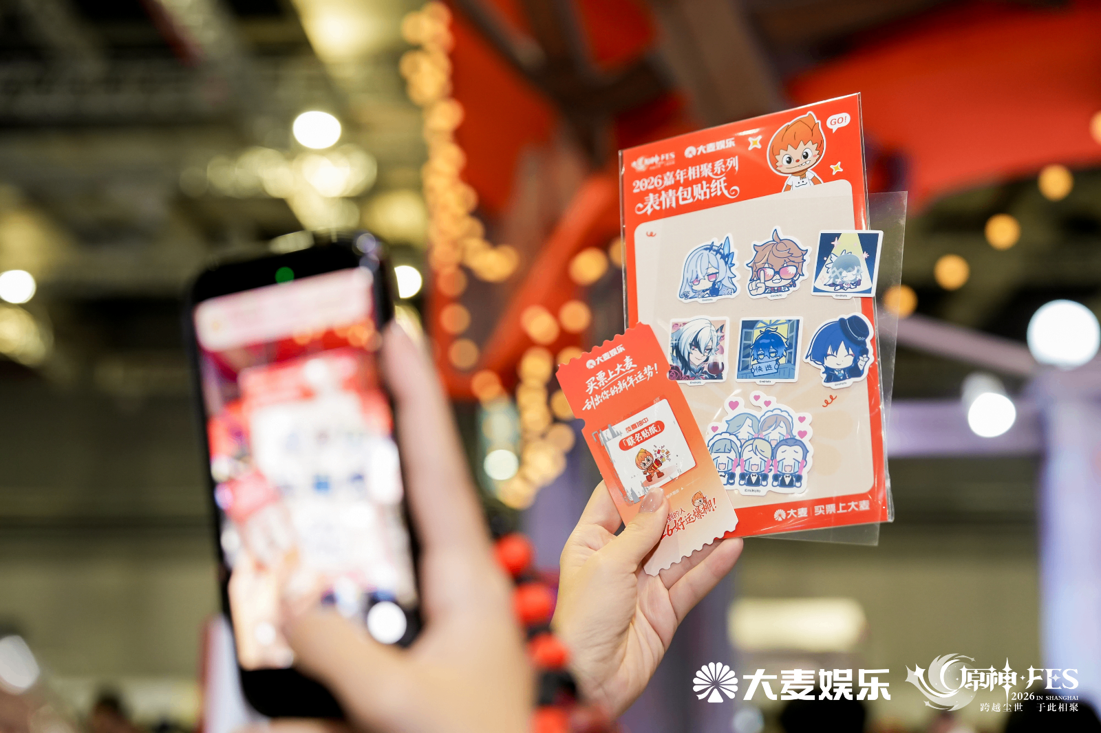 线下,大麦娱乐在“原神☆FES”嘉年华现场设置了品牌专属展位,以高互动、强记忆的实体触点,构建品牌与用户直接对话的桥梁。如现场设有挪德卡莱主题拍报亭,玩家可现场免费拍摄定制自己的专属主题报纸;玩家在社交平台发帖可免费领取100%中奖刮刮乐,解锁原石、独家2026嘉年相聚系列表情包贴纸等惊喜奖品;还有伴手礼袋、合影卡、旅行者T恤等大麦娱乐官方合作周边作为随票附赠或现场委托奖励发放。展会期间,数万玩家在此打卡互动,带动品牌情感渗透与用户自发传播的双向循环。