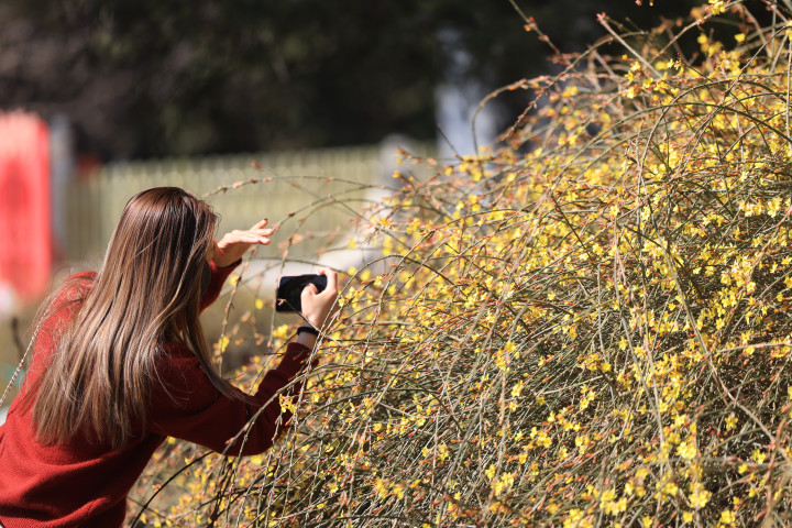 3月9日,景猴子园,市民正在拍摄灵通的迎春花。迎春花属于先花后叶品种。新京报记者王飞摄