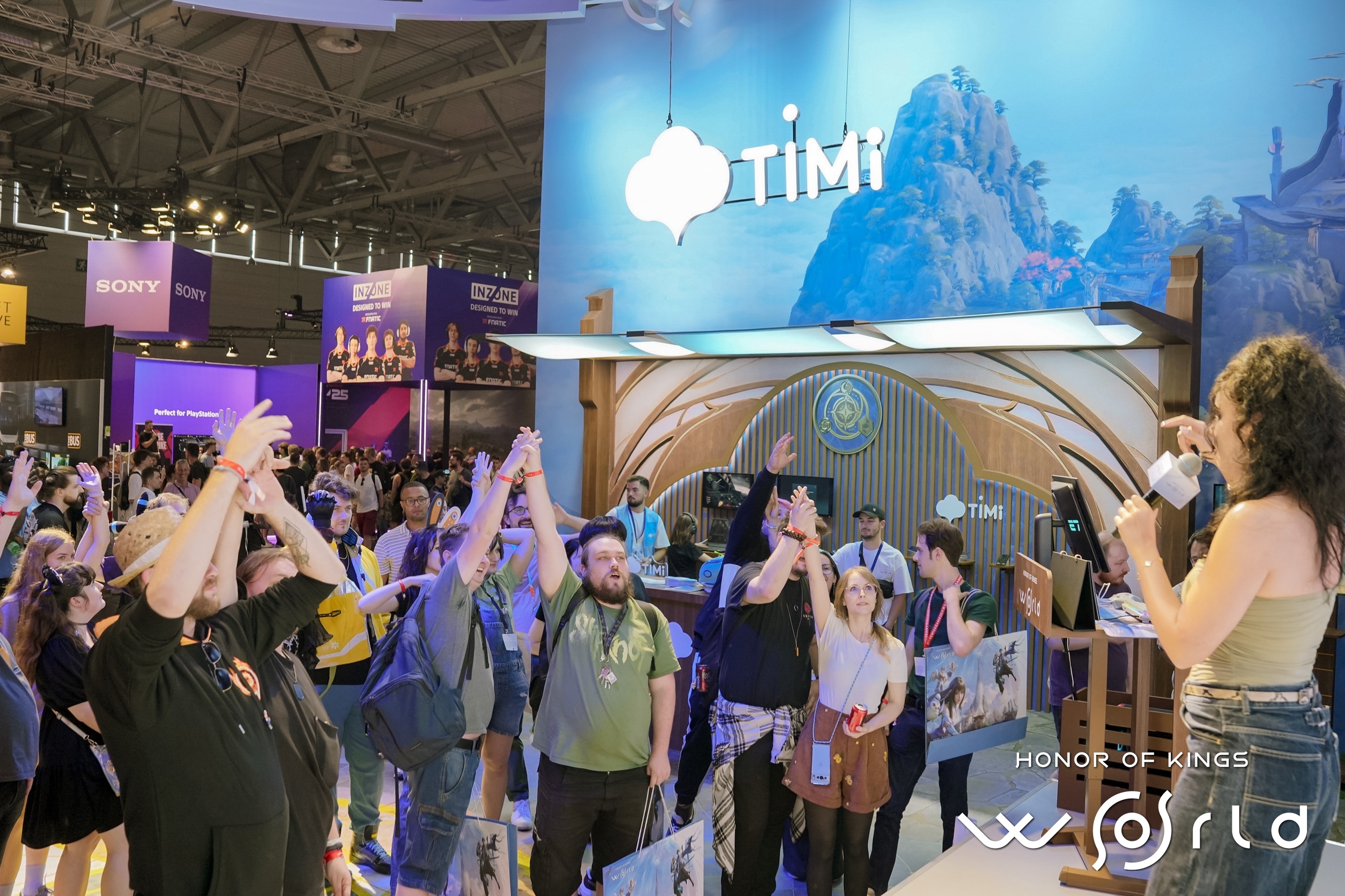 在科隆展9号馆,腾讯天美工作室群开发的《王者荣耀世界》首次亮相,开展当天一早,已有不少玩家排队试玩。游戏为线下试玩提供PC版本,支持鼠标键盘或手柄操作。展台一侧,天美工作室群还首次设立了品牌专区,带来旗下《三角洲行动》《王者荣耀国际服》《帝国时代海外版手游》《传说对决》《使命召唤手游》《宝可梦大集结》《怪物猎人:旅人》共七款产品的试玩或展示。