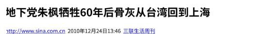三联生涯周刊《地下党朱枫遗弃60年后骨灰从台湾回到上海》